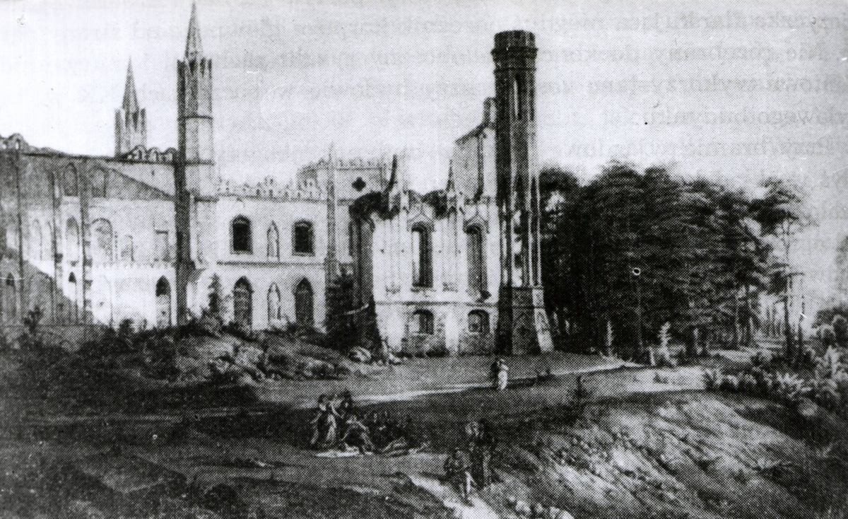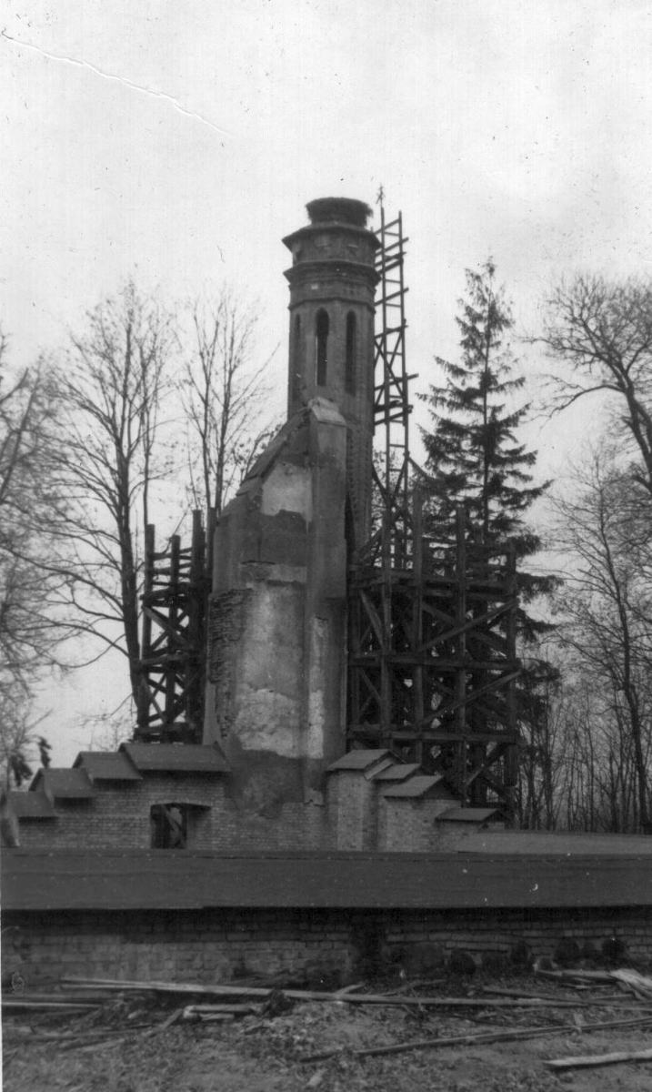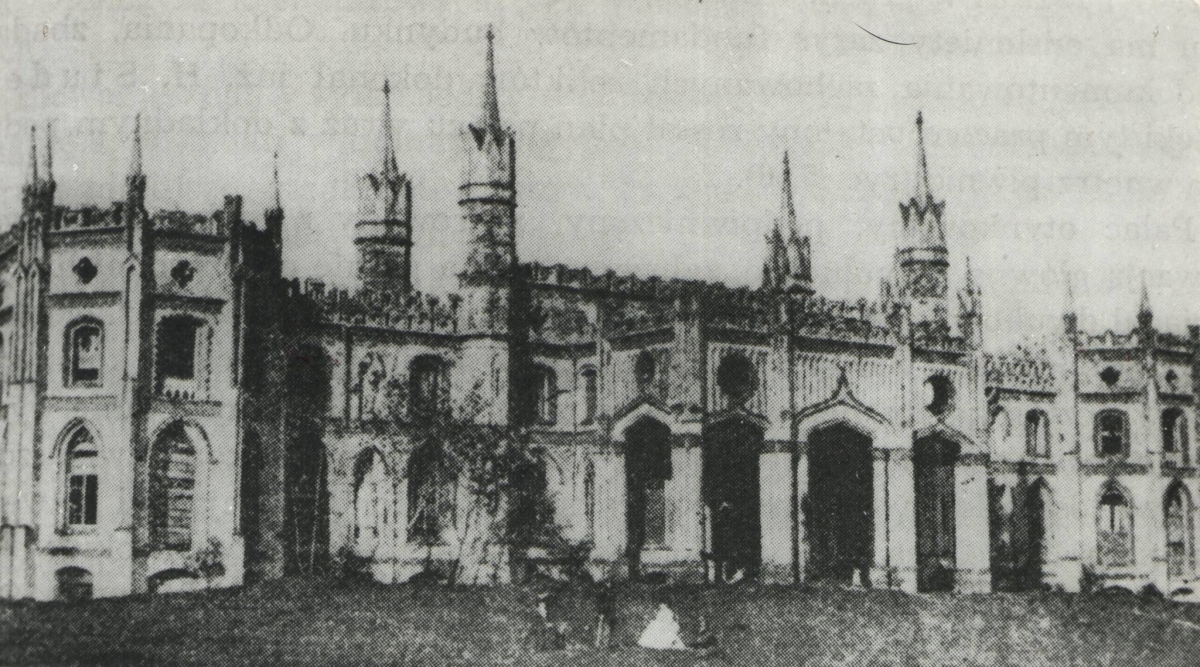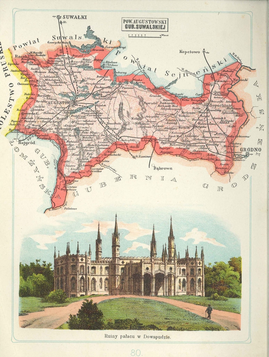 Budowę okazałego pałacu w Dowspudzie rozpoczął gen. Ludwik M. Pac w 1820 r. po powrocie z Włoch. Wiązało się to z decyzją o przeniesieniu do Dowspudy siedziby rodowej. W latach 1814-1815 Pac przebywał w Anglii, tam też prawdopodobnie narodził się pomysł budowy w Dowspudzie neogotyckiego pałacu, nawiązującego do ówczesnych rezydencji rodowych angielskich lordów. Dowspudzka posiadłość miała być zatem rezydencją wiejską, ale też swego rodzaju pomnikiem chluby oręża polskiego i znamienitości oraz poświęcania dla ojczyzny rodu Paców. Budowę pałacu rozpoczęto według planów i pod kierownictwem włoskiego architekta Piotra Bosio, ale od 1822 r. prowadził ją już sprowadzony specjalnie przez Paca z Włoch Henryk Marconi. Pałac w Dowspudzie zbudowany był z cegły, na planie odwróconej litery T. Elewację korpusu głównego zdobiły rzeźbione postacie czterech królów i ośmiu hetmanów. Reprezentacyjną część pałacu dowspudzkiego stanowiły pomieszczenia usytuowane na parterze zarówno w korpusie, jak i pawilonie. Mieściły się tam w zachodniej części korpusu biblioteka wojskowa i zbrojownia, we wschodniej zaś oranżeria i sala koryncka. Centralną część pawilonu stanowiła wysoka na dwie kondygnacje kaplica, za nią była galeria obrazów, w zachodnim skrzydle znajdowały się biblioteka, sypialnia reprezentacyjna oraz łazienka, we wschodnim natomiast sala bilardowa i jadalnia. Wszystkie pomieszczenia były bardzo bogato zdobione freskami, obrazami, rzeźbami, sztukateriami oraz militariami. Nie mogło w tak wystawnych wnętrzach zbraknąć kominka z kararyjskiego marmuru oraz fantazyjnej fontanny. Okna upiększały witraże. Na piętrze pałacu znajdowały się pokoje mieszkalne i gościnne. W dwukondygnacyjnych piwnicach na ich górnym poziomie mieściły się łazienki nazywane termami, również one były strojnie zdobione arabeskami i malowidłami o tematyce przyrodniczej. Przed fasadę korpusu głównego wysunięty był ocalały do dziś portyk, pełniący funkcję podjazdu.